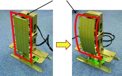 日本這個(gè)項(xiàng)目的研制目標(biāo)是面向未來航空裝備,用于取代機(jī)內(nèi)雷達(dá)天線,其實(shí)現(xiàn)的柔性共形陣天線技術(shù)主要實(shí)現(xiàn)了三點(diǎn):天線可以任意角度彎曲;天線傳感器可以根據(jù)彎曲狀態(tài)檢測曲率,自動(dòng)修正電磁波相位;通過對(duì)天線在彎曲狀態(tài)下與平面狀態(tài)下的增益效果進(jìn)行對(duì)比,驗(yàn)證了自動(dòng)修正電磁波的技術(shù)可行性。