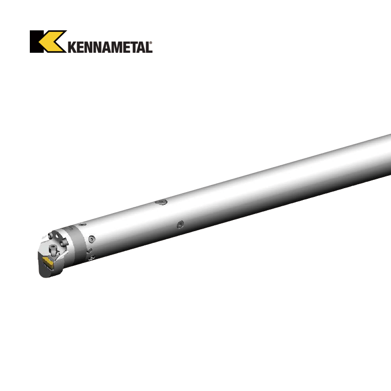 在深孔鏜削應用中使用KM快換式刀頭和可調諧鏜桿,可以減少振動,提高加工效率。